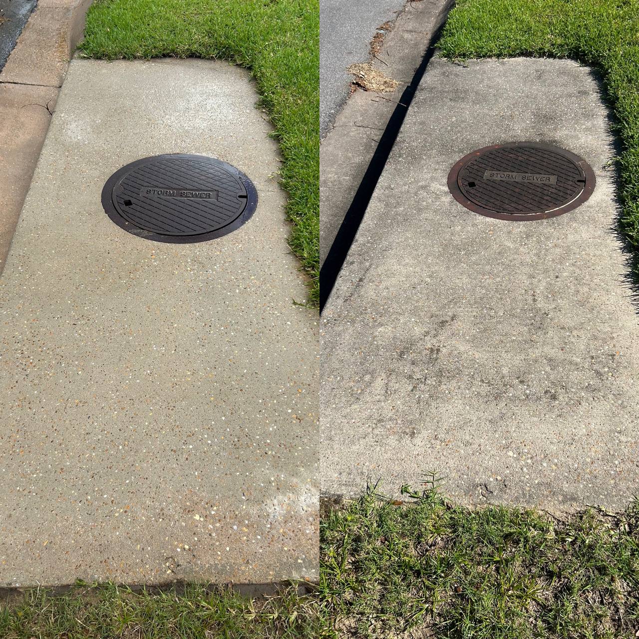 These concrete walkways and driveway in Pensacola, FL received professional pressure wash cleaning to remove years of accumulated grime and surface buildup. Organic growth, dirt, and debris had settled deep into the concrete, causing discoloration across both the walkways and driveway. Before cleaning, our team carefully assessed the surfaces to select the appropriate pressure and cleaning techniques. Using professional-grade pressure washing equipment, we cleaned deep within the concrete to lift embedded contaminants. This pressure wash cleaning process safely removes algae, stains, and stubborn buildup without damaging the surface. Eliminating these contaminants helps protect both the walkways and driveway from long-term concrete deterioration. Clean concrete surfaces also reduce slipping hazards and improve overall safety. As the buildup was removed, the concrete’s original color and uniform appearance were restored. Routine concrete walkway and driveway cleaning is essential for preserving exterior hardscapes. The freshly cleaned surfaces now look bright, well maintained, and nearly new, significantly enhancing curb appeal.