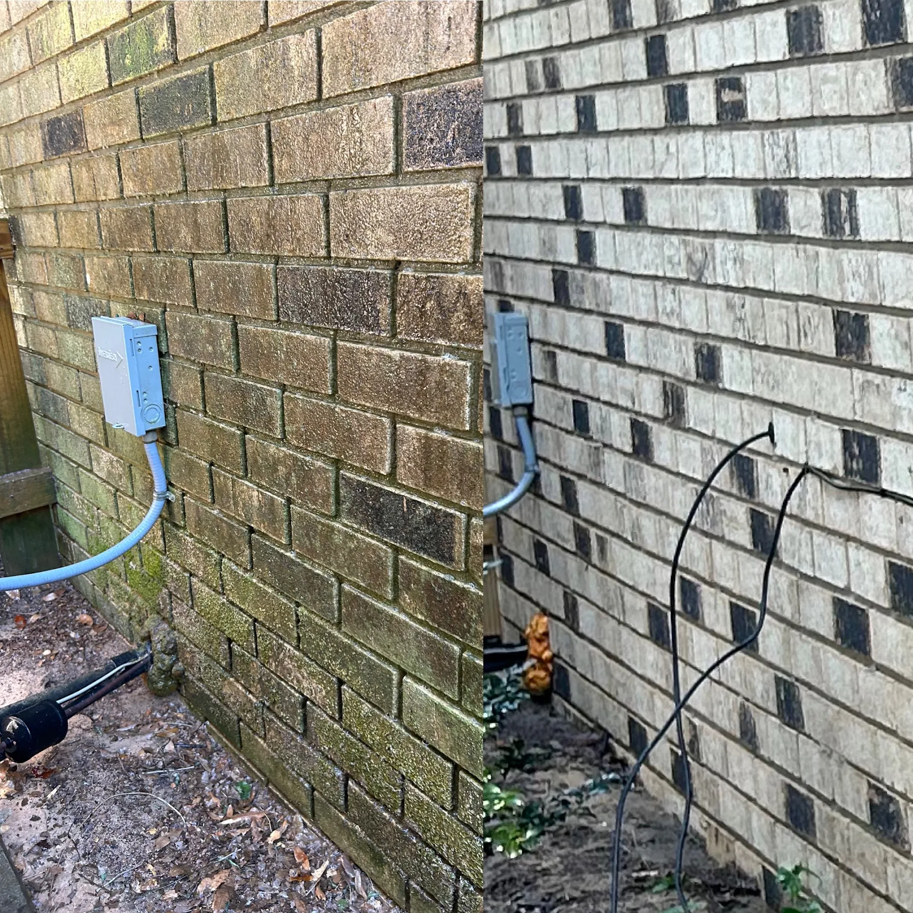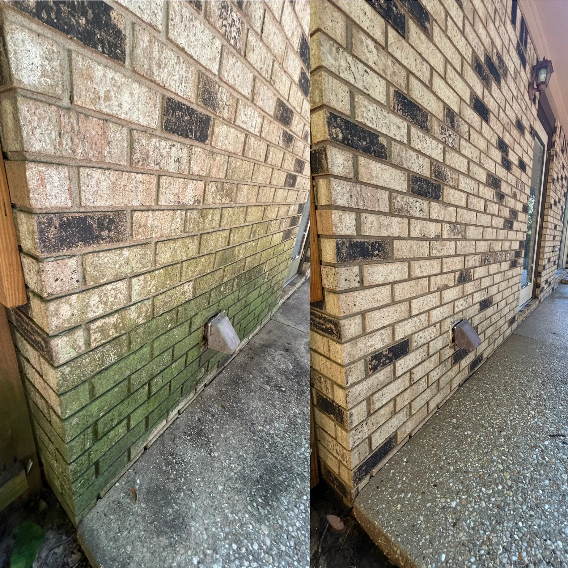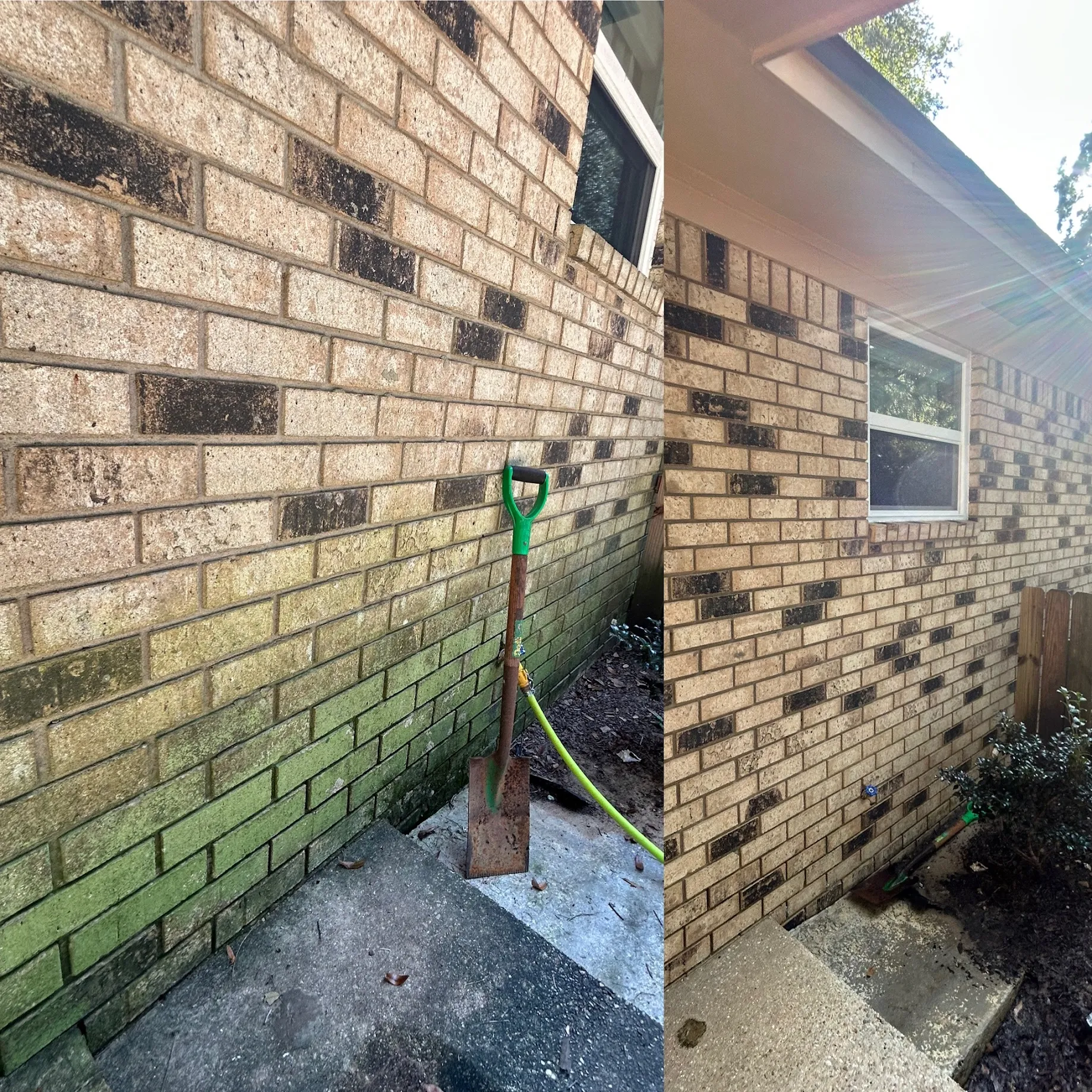 This home received a complete exterior refresh with our professional water pressure cleaning. The brick walls, once stained and darkened with algae, were carefully washed to restore their original beauty. Using the right techniques, we removed tough grime without harming the surfaces. The concrete areas, including the walkways and driveway, were also deeply cleaned, making them bright and spotless again. The garage entrance now looks sharp and tidy, creating a stronger first impression. This detailed cleaning improved the curb appeal of the property instantly. Walkways that were once slippery are now safe and clean for daily use. Every section of the home’s exterior was handled with care to ensure even results. The difference between the before and after is remarkable and long lasting. The property now feels more welcoming and polished. Pressure cleaning not only enhances beauty but also protects surfaces from further buildup. Regular maintenance like this can preserve the home’s appearance for years. The transformation proves the effectiveness of professional water pressure cleaning services.