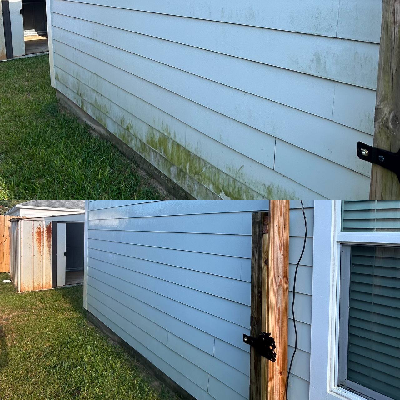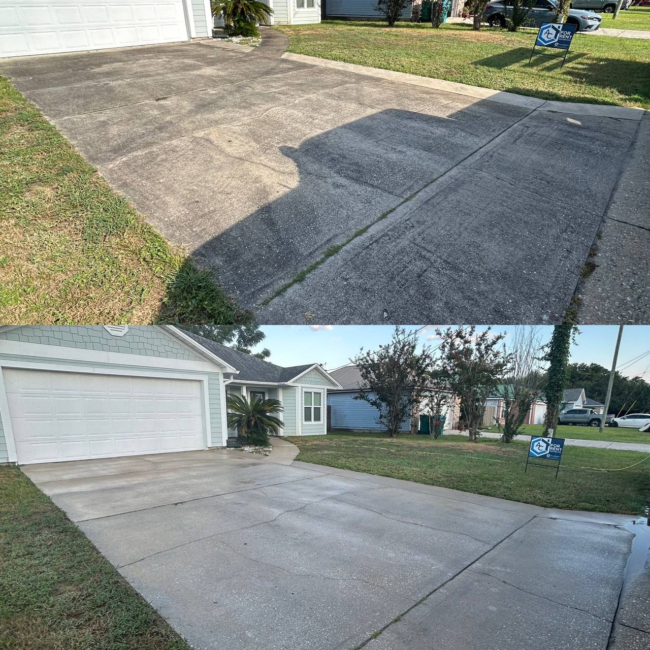 We completed a professional driveway cleaning and exterior cleaning service for a home in Fort Walton Beach, Florida, restoring the driveway and exterior siding to a clean, refreshed, like-new appearance. Our pressure washing process safely removed built-up dirt, stains, and organic growth from the concrete driveway, while our soft wash cleaning method treated the siding using low-pressure water and specialized cleaning solutions. This approach effectively eliminates algae, mold, mildew, and environmental buildup while protecting delicate exterior surfaces from damage. Routine exterior cleaning helps prevent premature surface deterioration caused by Florida’s humid climate and organic growth. Maintaining clean concrete and siding not only improves curb appeal but also helps preserve the longevity and structural condition of the property.