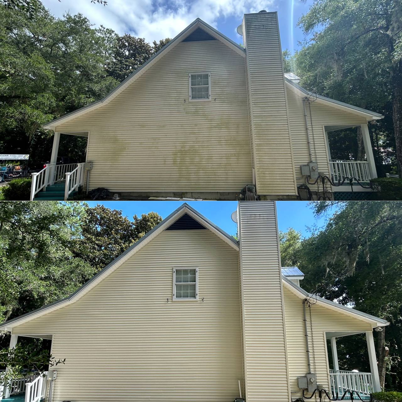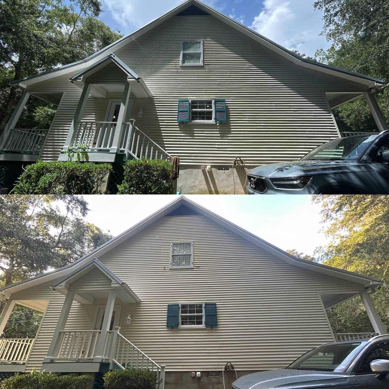 We performed a reliable house soft wash cleaning on vinyl house siding in Daphne, Alabama. Our low-pressure washing process safely cleaned the exterior without causing surface damage. Mold, mildew, algae, pollen, and organic stains were effectively removed. The soft wash method penetrates deep to treat the root of organic growth. This exterior cleaning service restored the home’s clean and refreshed appearance. It also helped protect the siding from premature wear. Soft washing is an ideal solution for maintaining vinyl house siding safely. The result was a brighter home with improved curb appeal.